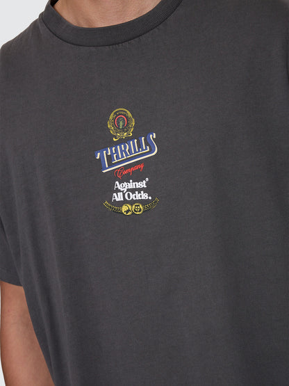 Street-ready with an understated retro vibe, the Against All Odds Merch Fit Tee in Merch Black is an instant favourite. Cut from lightweight dry hand cotton jersey, this black men's tee delivers everyday comfort with a relaxed merch fit that feels premium from the first wear. The heavy stone and enzyme wash give it that cracked-in, lived-with look, while the front and back crackly high-density prints bring bold, counterculture energy. Pair with baggy, slacker denim jeans for the ultimate retro look.