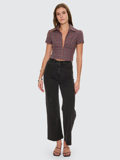 The Almighty Check Short Sleeve Shirt in Vintage Mauve brings the Ô90s vibe and attitude to your everyday fits. Cut from soft 100% cotton yarn dye check, it features a deep V-neckline with a hook-and-eye front closure, creating a fitted silhouette that flatters without trying too hard. Bust seam with gathers, cropped length, and subtle sleeve details give this women's shirt a feminine edge with street sensibility. Designed to pair effortlessly with high-rise denim or cargos, it's a womenÕs fashion staple to add to your summer favourites.