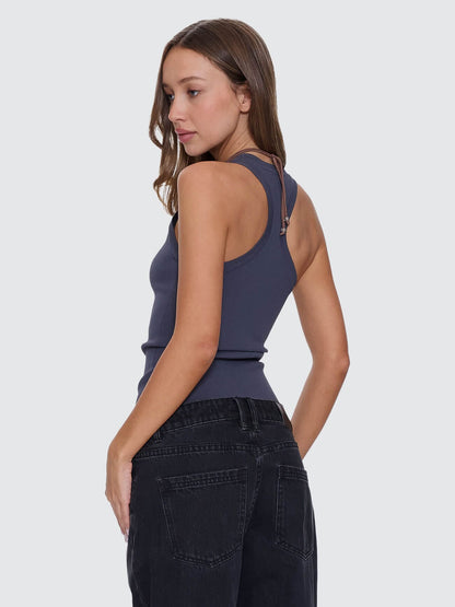 Clean, confident, and cut to move, the Astra V Neck Tank in Carbon strips things back to the essentials. Designed with a sharp V-neck halter and racer back, this knitted tank top is designed to flatter, offering a smooth, sculpted feel that keeps the silhouette tight and intentional. The soft knit fabrication adds comfort without losing its edge, making it an easy pick for long days and late finishes. Style this women's tank top with baggy denims or layer it up for an edgy, understated finish.