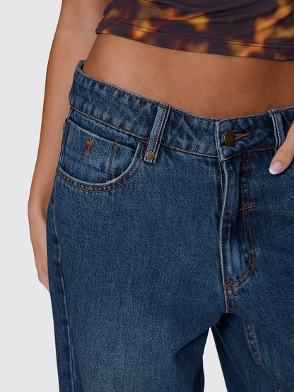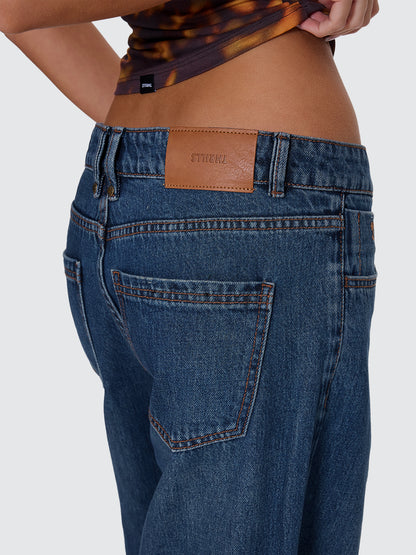 Roomy and loose through the leg with the unmistakable Thrills attitude, the Billie Low Rise Baggy Jean in Teal Blue lands right in the sweet spot of street and everyday wear. Sitting low on the waist, this baggy denim brings effortless volume and movement, keeping things relaxed and comfy without losing shape. Cut from lightweight cotton denim, it feels easy from first wear, featuring centre front zip and button closures, plus the front and back pockets. Available in a versatile, wearable wash that's easy to pair with cropped tanks or oversized tees.
