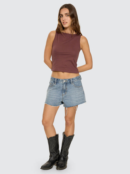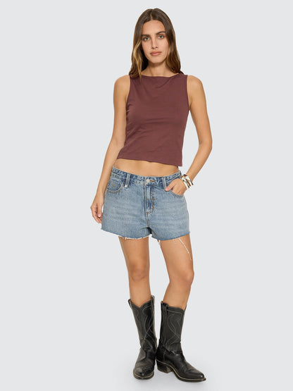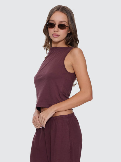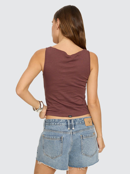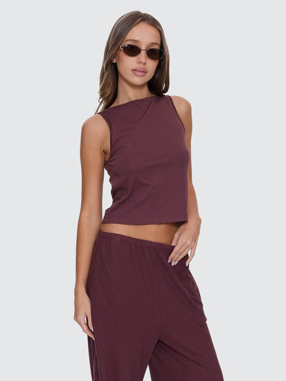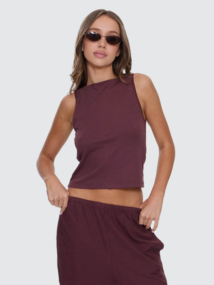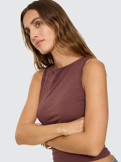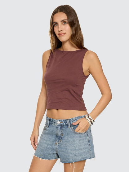 Keep it simple and stylish with the Bounty Tank. Made from a lightweight cotton jersey, this fitted tank for women features a clean, sleek design with a high boat neckline and cropped length. Perfect for layering or wearing solo, it pairs effortlessly with baggy jeans, denim shorts, or a wrap skirt for versatile styling.