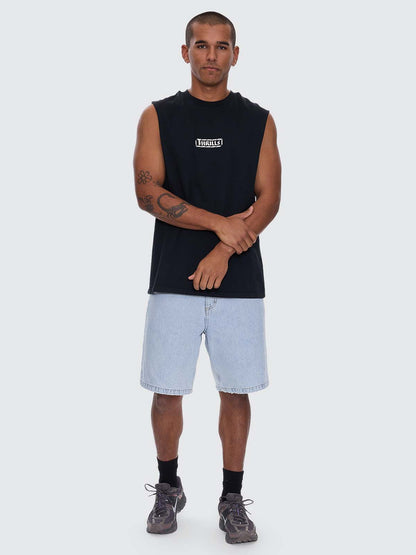 Ready for the warmer weather, the Calm State Embro Box Fit Oversize Cropped Muscle Tee in Washed Black brings a stripped-back streetwear vibe with a muscle cut edge. Designed in a box fit t-shirt au block, its oversized, cropped at the waist, and finished without sleeves for a bold, breathable look. Made from a midweight cotton dry hand jersey, its soft, durable, and easy to wear on repeat. Minimal front embroidery keeps it clean and versatile, perfect for styling with baggy shorts or slacker denim jeans. Cop this style now from our casual men's tee Australia summer drop and enjoy free shipping AU-wide.