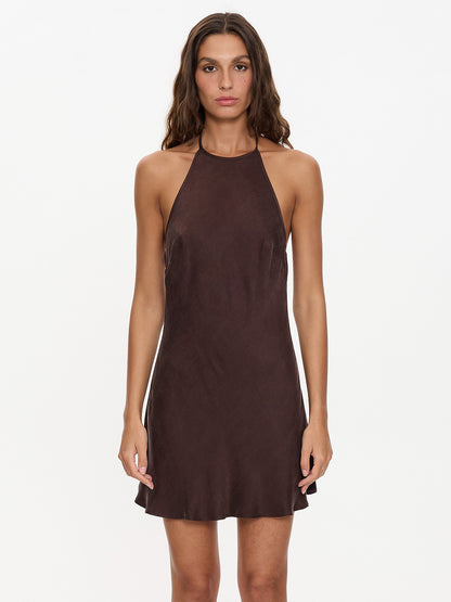 Slip into effortless elegance with the Celeste Bias Halter Mini Dress in Postal Brown. Cut from a silky cupro-rayon blend, it skims the body with a soft drape and subtle sheen. The bias cut flatters every curve, while the halter neckline adds a touch of understated drama. Whether you're transitioning from the office to chasing sunset drinks or styling it as an evening dress Australia, this one's a designer pick for its versatility. Ready to make it yours? Use Afterpay when you buy dresses online and enjoy free shipping across Australia.