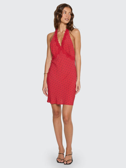 Playful elegance meets everyday wear with the Dakota Lace Mini Dress in Red Polka Dot. Delicate lace detailing adds texture and sophistication, while the classic polka dot pattern brings a touch of retro charm. Perfect for date nights, brunch outings, or whenever you want to feel effortlessly chic. The mini silhouette offers a flirty, modern vibe that pairs beautifully with Loafers or heels. A versatile wardrobe essential that transitions seamlessly from day to night.