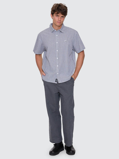 Clean lines with a jolt of attitude, the Heavy Voltage Cropped Short Sleeve Shirt in White keeps things sharp without losing the lived-in Thrills feel. Cut from crisp cotton with a yarn-dyed check, the cropped silhouette brings a modern edge to a classic button-up. Finished with a clean collar and subtle embroidery, this men's shirt is built for easy styling, whether worn loose, layered, or buttoned clean. Light, breathable, and made to move, this men's streetwear piece is an all-season hit.