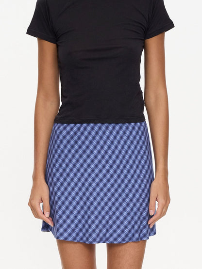 Bring back the 2000s attitude with the High Speed Check Mini Skirt in Guardian Navy. Part of our grunge plaid collection, this piece from our women's skirts AU drop features a refreshing take on a classic print, bold check patterns for that retro energy, with a touch of rebellion. Designed with a clean mini cut and slim fit, this skirt is made from lightweight rayon yarn dye check, offering movement and all-day comfort in style. Perfect for styling with a simple black tee or pairing with the matching check top for a full look.