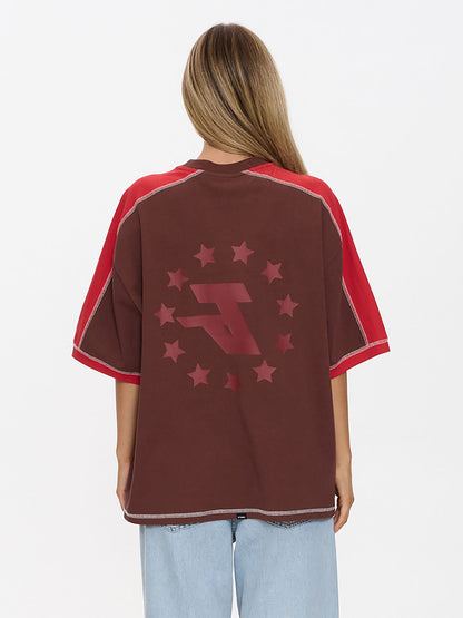 Turn up the heat in the Hot Shot Panelled Oversized Tee in Acorn. Built from heavyweight organic cotton tee Australia jersey, it delivers the structured dry-hand feel Thrills is known for. The box fit t shirt au silhouette brings an easy, oversized vibe, while the contrast red panelling and bold chest embroidery push it firmly into streetwear t shirt Australia territory. Perfect with baggy jeans or cargos, this ones made for standing out and effortless movement. Ready to cop? Buy this style online with tees afterpay Australia, or grab it in our tees sale Australia to enjoy free shipping nationwide.