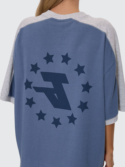 Turn up the retro vibe with the Hot Shot Panelled Oversized Tee in Bluefin, bringing stadium energy with contrast raglan sleeves and a roomy, drop-shoulder cut that hangs just right. Built from heavyweight 280gsm dry-hand cotton jersey, it's got the sturdy, premium feel you can wear on repeat. Up front, high-density artwork and clean embroidery deliver texture, while out back, a large graphic makes the exit just as strong as the entrance. Throw on with denim jeans or baggy cargos and let this oversized women's tee do the talking.