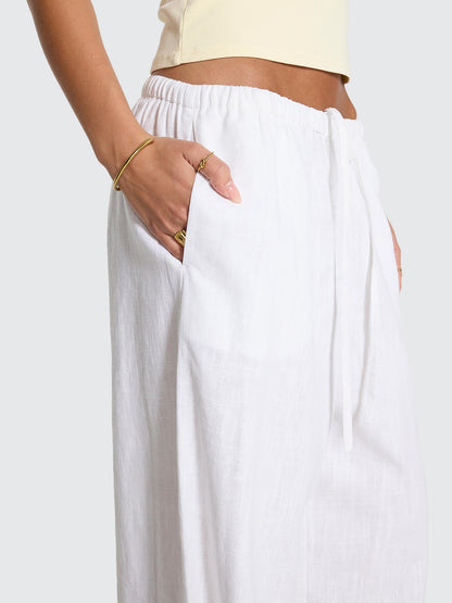 Effortlessly transition from beach days to dinner dates in the Lettie Elastic Pant. Crafted from breathable linen, these wide-leg beauties offer the perfect blend of comfort and style,airy enough for summer heat, polished enough to dress up or down. Whether you're shaking off sand or heading out for the evening, they've got you covered.
