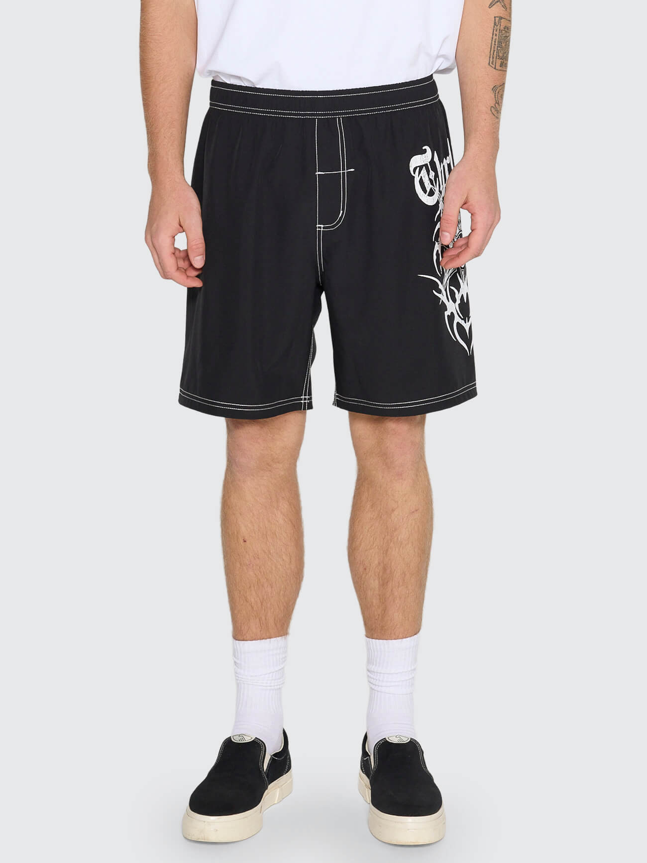 These shorts feature a striking printed graphic that commands presence. The tailored fit and quality construction make them equally suited for athletic pursuits or casual wear. A versatile essential that balances style with functional versatility.