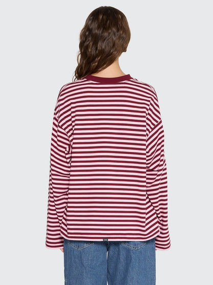 Oversized comfort meets bold style with the Muse Long Sleeve Tee in Cherry Red Stripe. This relaxed-fit essential features a striking vertical stripe pattern that adds visual interest to your everyday rotation. Crafted for that effortless, laid-back vibe, it's perfect for layering or wearing solo. The generous cut ensures all-day comfort, while the long sleeves offer versatile styling options year-round. A playful staple that works as hard as you do.
