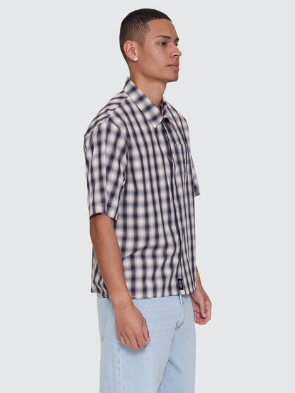 Laid-back with a sharp edge, the Paradise Falling Short Sleeve Cropped Check Work Shirt in Navy is built for warm days and easy nights. The cropped cut keeps things modern, while the yarn-dyed cotton check brings the worn-in, workwear feel Thrills does best. Finished with a button-up front, classic collar, and chest pocket with embroidered detail, this men's work shirt is all about balance. Perfect to dress up or down, this men's clothing staple can be worn loose, layered, or buttoned for a clean, effortless finish. Wear it loose, layer it, or button it clean. A