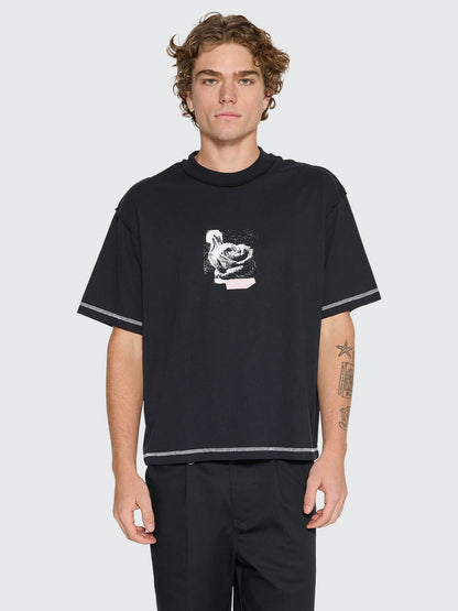 Oversized comfort meets bold attitude. This box-fit cropped tee features a striking Rose Brigade graphic centered on the chest, crafted from soft washed black fabric that gets better with wear. Perfect for effortless layering or standalone styling, it's the kind of piece that works as hard as you do, whether you're hitting the streets or just living your best life. Relaxed fit, maximum impact.