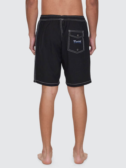 From surf days to street hangs, the Run For The Hills Elastic Waist Boardshort in Black keeps it easy and agile. Cut in a regular fit with an elastic drawcord waist, this black men's boardshort moves as you move, thanks to its 4-way stretch, durable fabrication. Contrast stitching adds definition, while front side pockets, a key loop, and back embroidery handle the details. Finished with a clean side print for a low-key attitude that goes well for daily wear.