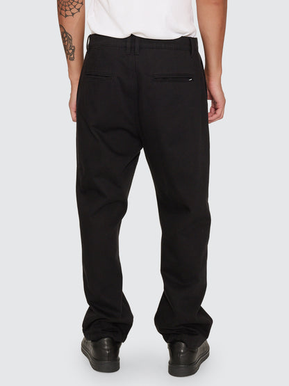 Sharp where it counts, relaxed everywhere else, the Slacker Chino Pant in Black delivers a clean silhouette with a slacker attitude. Cut from durable cotton denim, this men's clothing staple is built for everyday wear, keeping things comfy, easy, and sleek. The tailored shape is finished with a fixed waist, zip-and-button fly, belt loops, and a back welt pocket for a polished touch. Available in timeless black, this chino pant is effortless to style, whether with a button-up or oversized tees.
