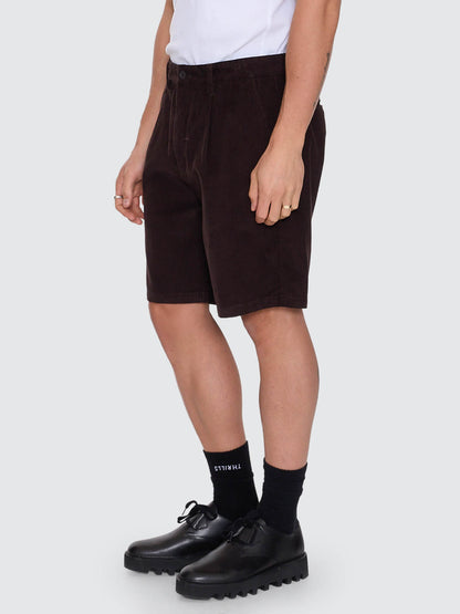 Vintage texture meets everyday comfort in the Slacker Cord Chino Short in Postal Brown. Cut from soft 11-wale cotton corduroy, these men's chino shorts deliver a relaxed fit with just the right amount of structure and edge. Designed with welt pockets and a classic zip-and-button fly to keep things clean, while belt loops give you styling options on the go. Easy to dress up, easy to wear down, these men's shorts are made for repeat rotation, bringing unmistakable Thrills slacker attitude to any look.