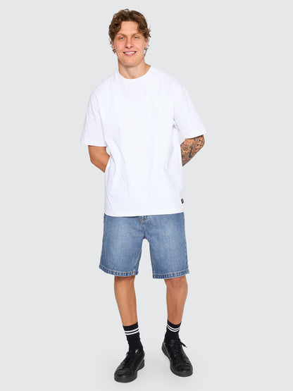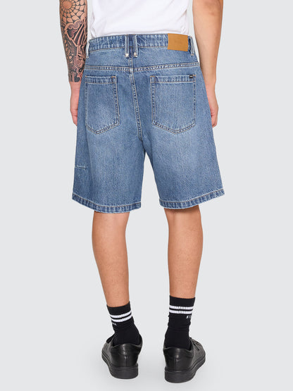 The Mid Slacker Long Short in Dark dust blue takes Thrills relaxed denim fit into warm-weather territory. Roomy, loose, and built for comfort, it is made from heavy-wearing cotton denim, featuring more room through the body and a touch more length that finishes just past the knee for a more forward fit finish. Designed for versatility, this is a men's fashion au staple that pairs easily with oversized tees for an effortless street-ready look. Available now to buy online with Afterpay and free shipping in Australia.
