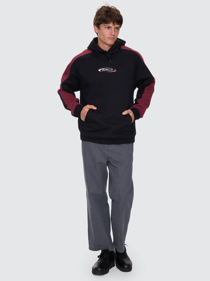 Perfect for cold nights and late finishes, the Spectral Raglan Panel Cropped Hood in Black brings a sharp sportswear attitude into your cool-weather rotation. Cut from heavyweight brushed fleece, this cropped men's hoodie delivers premium warmth in style, featuring a relaxed, cropped fit, and contrast panels and piping to finish things off. The centre-front embroidery keeps the look grounded, while the drawcord hood and pouch pocket add functionality.