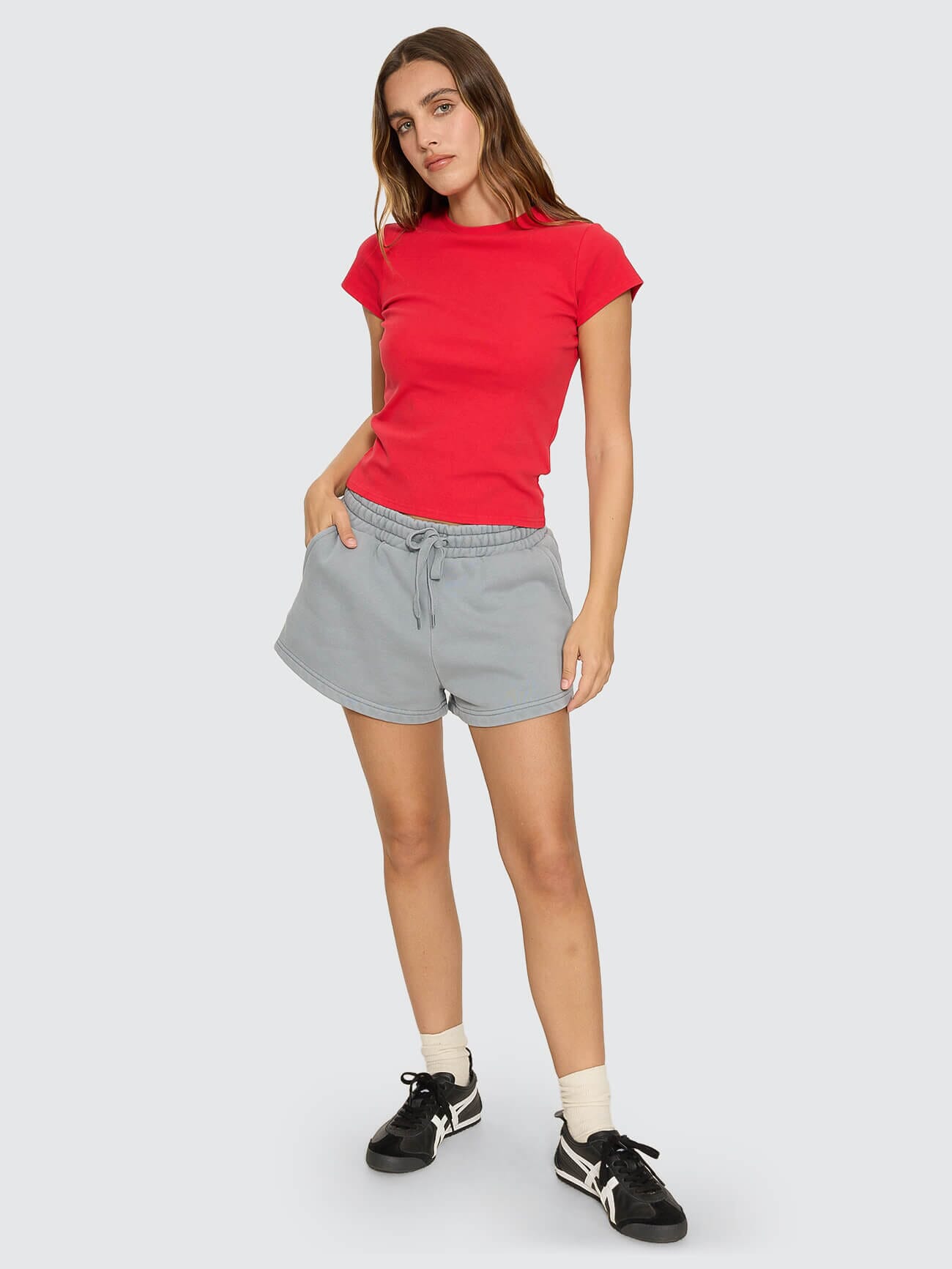 Laid-back with a sporty edge, the Stadium Track Short in Smog is your new go-to off-duty summer shorts. An Australian women's clothing staple for warm weather, they're crafted from heavyweight brushed fleece for a premium feel and all-day comfort. Designed with a snug elastic waistband, relaxed leg and wide hem, these vintage denim shorts channel retro athletic vibes with modern street appeal. Available in a washed grey finish, they're a cooler-season twist on your go-to casual cotton shorts, built for comfort and style in a true track-style energy.