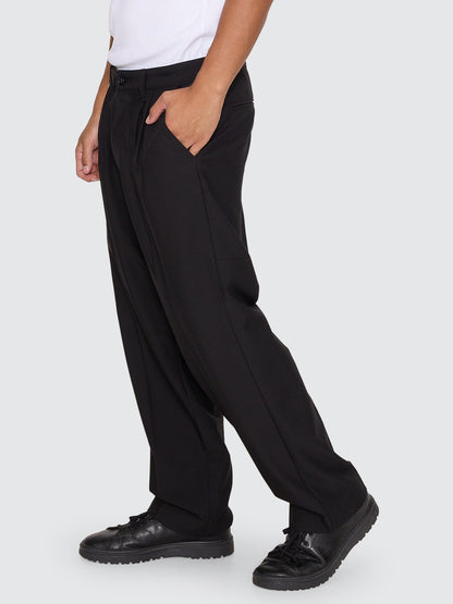 A fresh take on classic tailoring, the Vision Jacob Pant in Black brings a relaxed, vintage-inspired vibe to modern streetwear. These men's pants offer a structured yet comfy fit, crafted from a poly-rayon blend that keeps things lightweight and breathable. Whether dressed up or down, the loose silhouette and subtle pleats make this men's clothing piece a staple for any occasion.